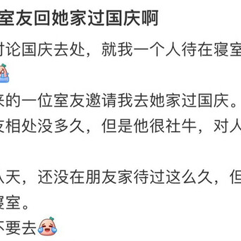 股票操作平台 要不要和室友回她家过国庆啊
